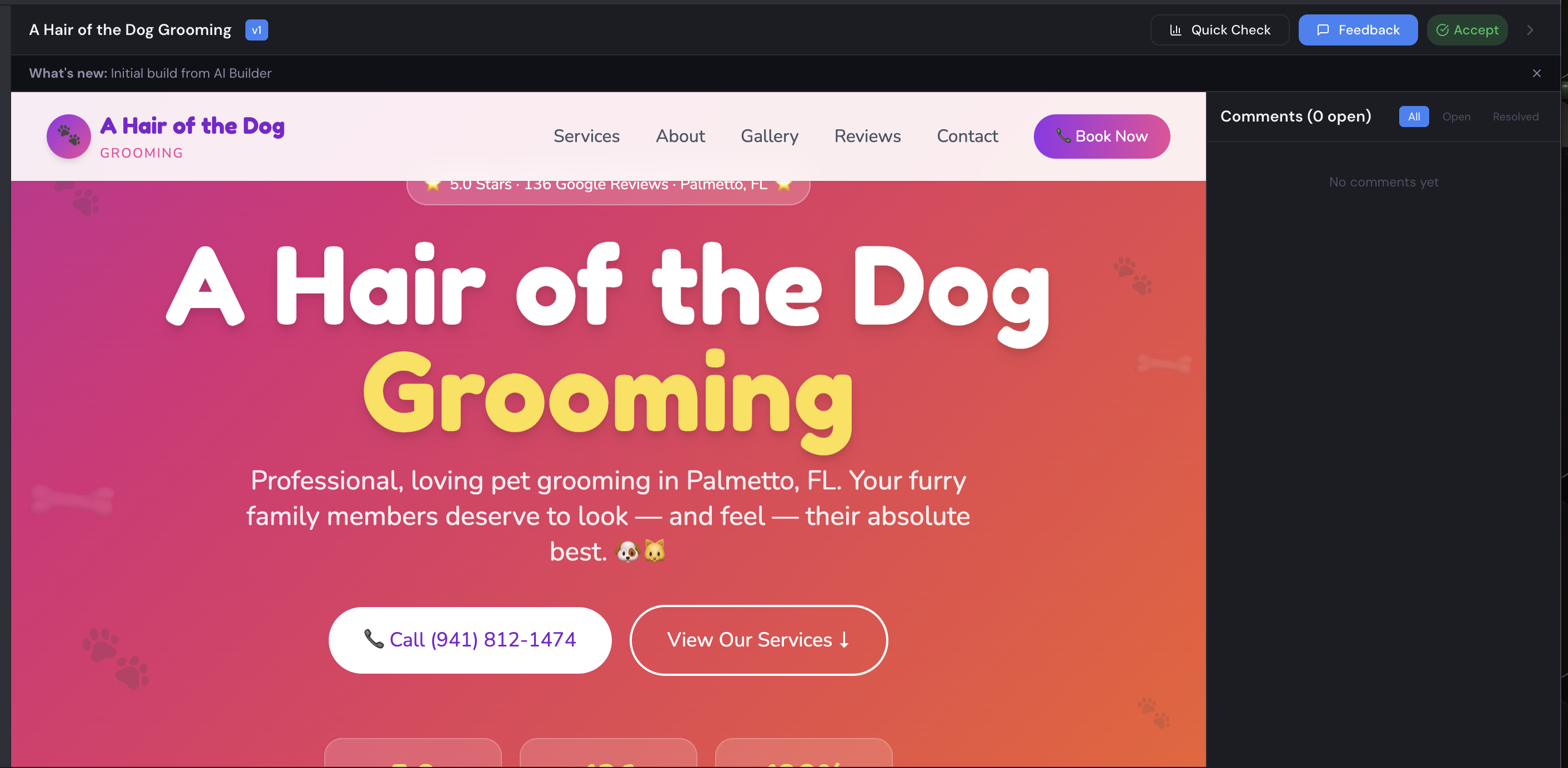 Build the site using AI Builder (or upload your own).