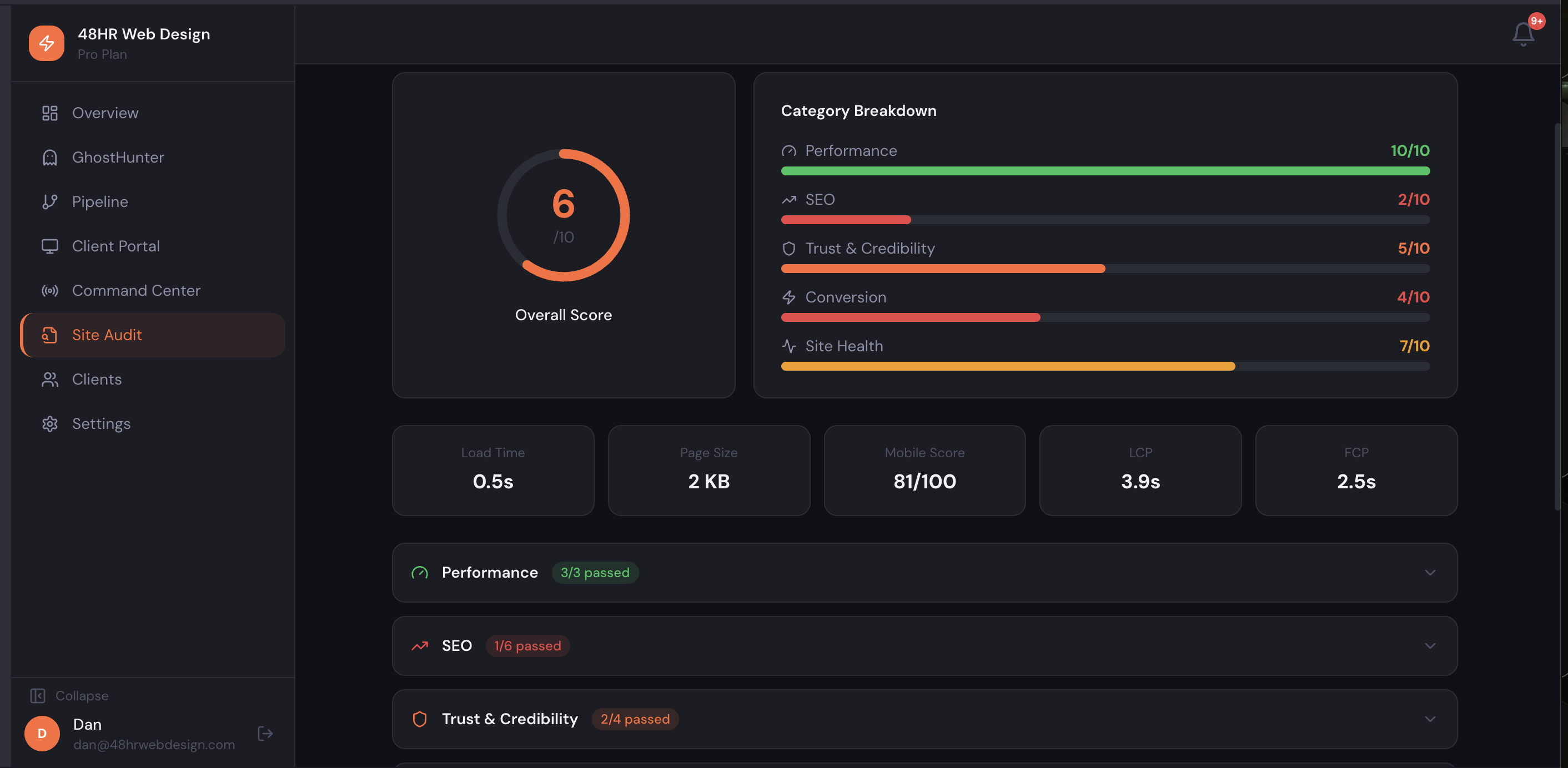 Run audits on prospect sites. Show them exactly what's broken. Close deals with data, not pitches.